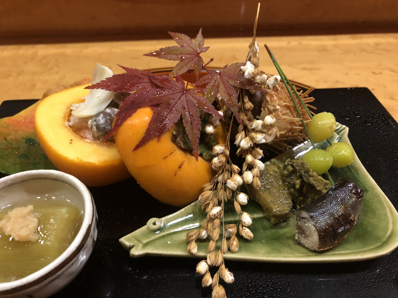 寿司飯の中に、季節に応じた旬の食材をたくさん混ぜ込み、上置には、春はママカリ・サワラ・筍など、夏は穴子・ハモを中心に、秋には松茸を入れて四季折々の味が楽しめます。ばら寿司が入った「おまかせ料理」(要予約)もございます。ばら寿司はお土産にもおすすめです。季節により地方発送も可能ですので、お気軽にお問い合わせください。
